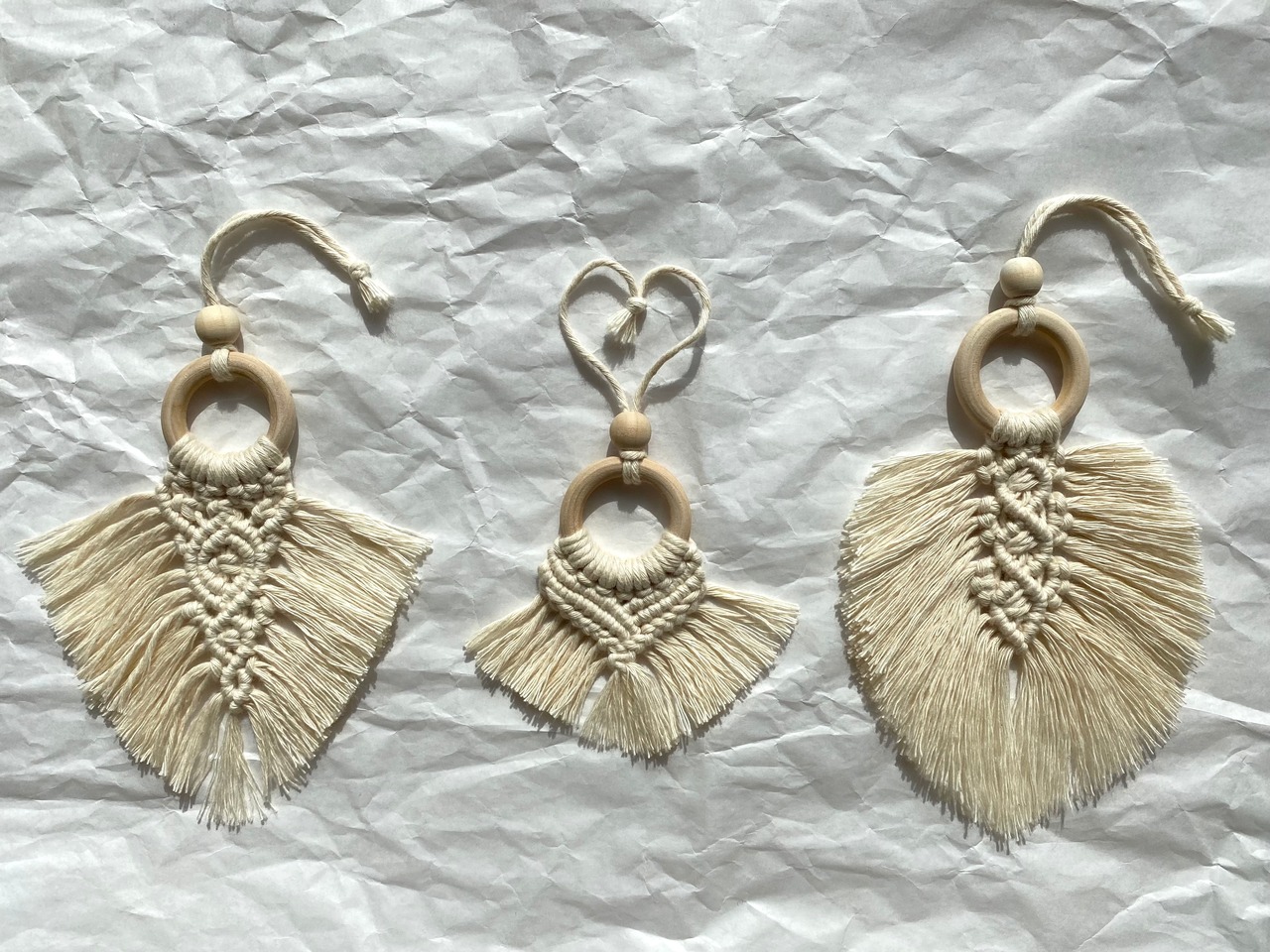 ⚮̈ マクラメ編みで作ったキーホルダー/カーチャームです︎ ⍋↟